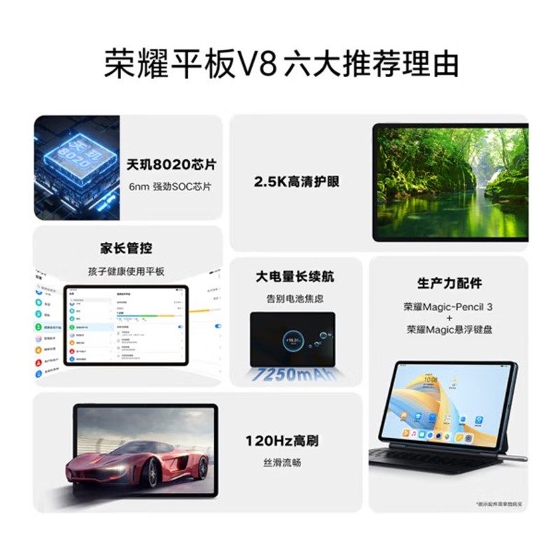 • 榮耀V8平板 11英寸 2.5K超清120Hz護(hù)眼屏 天璣8020 商務(wù)辦公影音娛樂學(xué)習(xí)平板電腦Pad 8+256GB WIFI 曙光藍(lán)